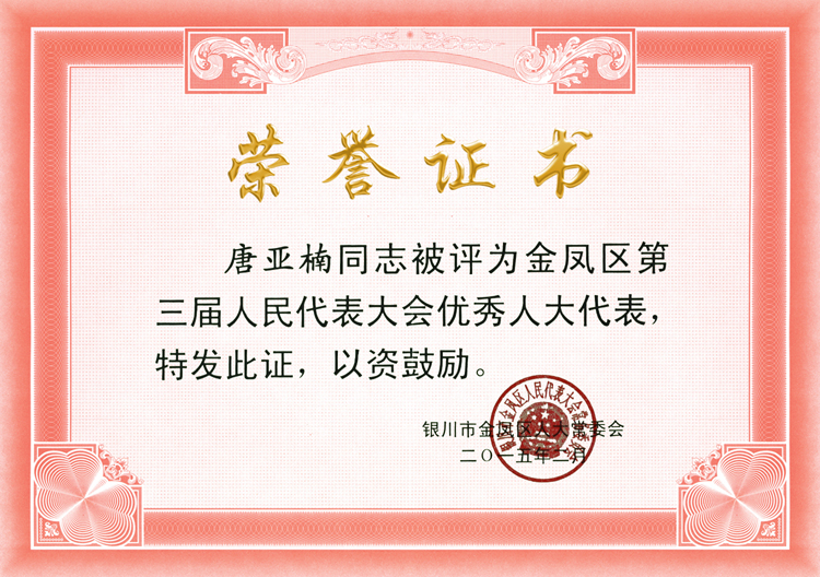 總經理唐亞楠被評為金鳳區三屆人大優秀代表