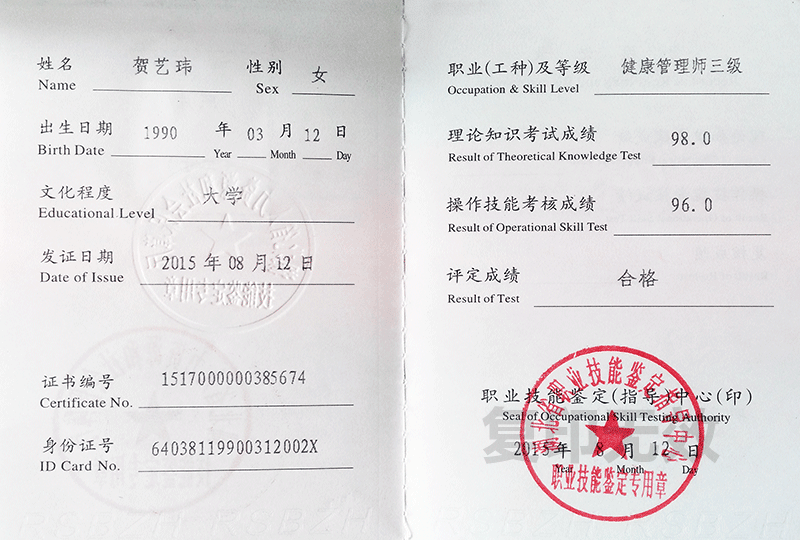 賀藝瑋獲得高級公眾營養(yǎng)師資格
