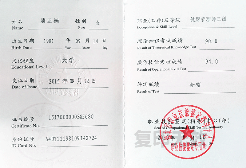 總經理唐亞楠獲得健康管理師資格