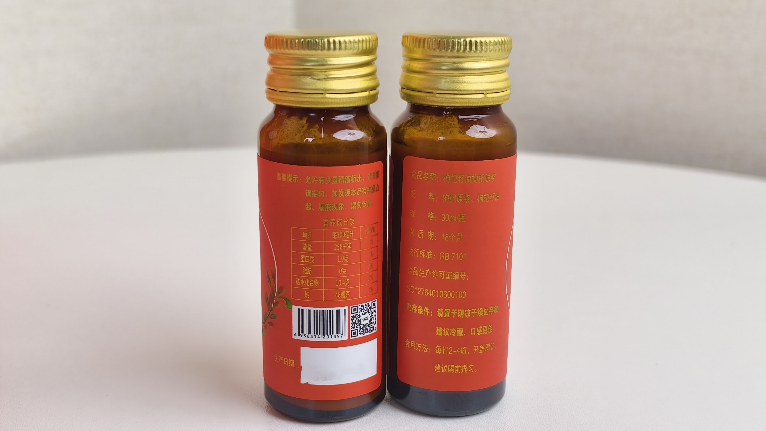 配料:枸杞原漿、枸杞籽油